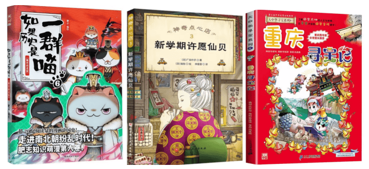 《如果历史是一群喵》系列丛书累计借阅467次、《神奇点心店.3:新学期许愿仙贝》借阅75次、《重庆寻宝记》借阅73次。