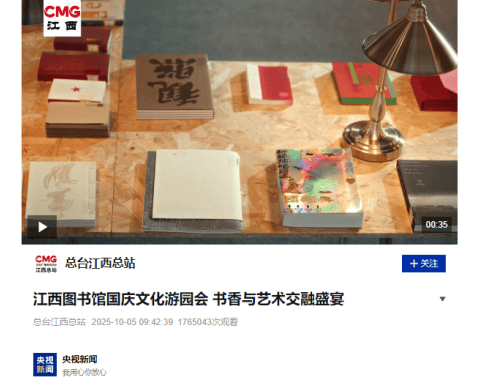 10月5日,中央广播电视总台江西总站对我馆开展的“畅游书海 阅见山河”国庆园游会系列活动进行报道,总浏览量达176.5万次。